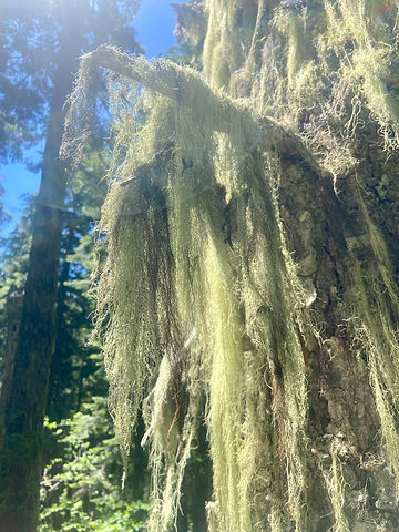 This summer, while participating with The Sustainable Herbs Initiative in Oregon, I had the extraordinary opportunity to meet with three seasoned wildcrafters in their natural office—the forest. Our group ventured silently into the heart of Oregon’s vast ancient woods, and it was there I encountered a spectacle: trees festooned with vibrant, neon green strands, draping like an old man’s beard from their branches and trunks. It was usnea, a significant medicinal lichen. In herbalism, usnea is celebrated for its ability to balance an overactive immune system, among other benefits, and it holds a special place in the Wishgarden Herb’s collection.
